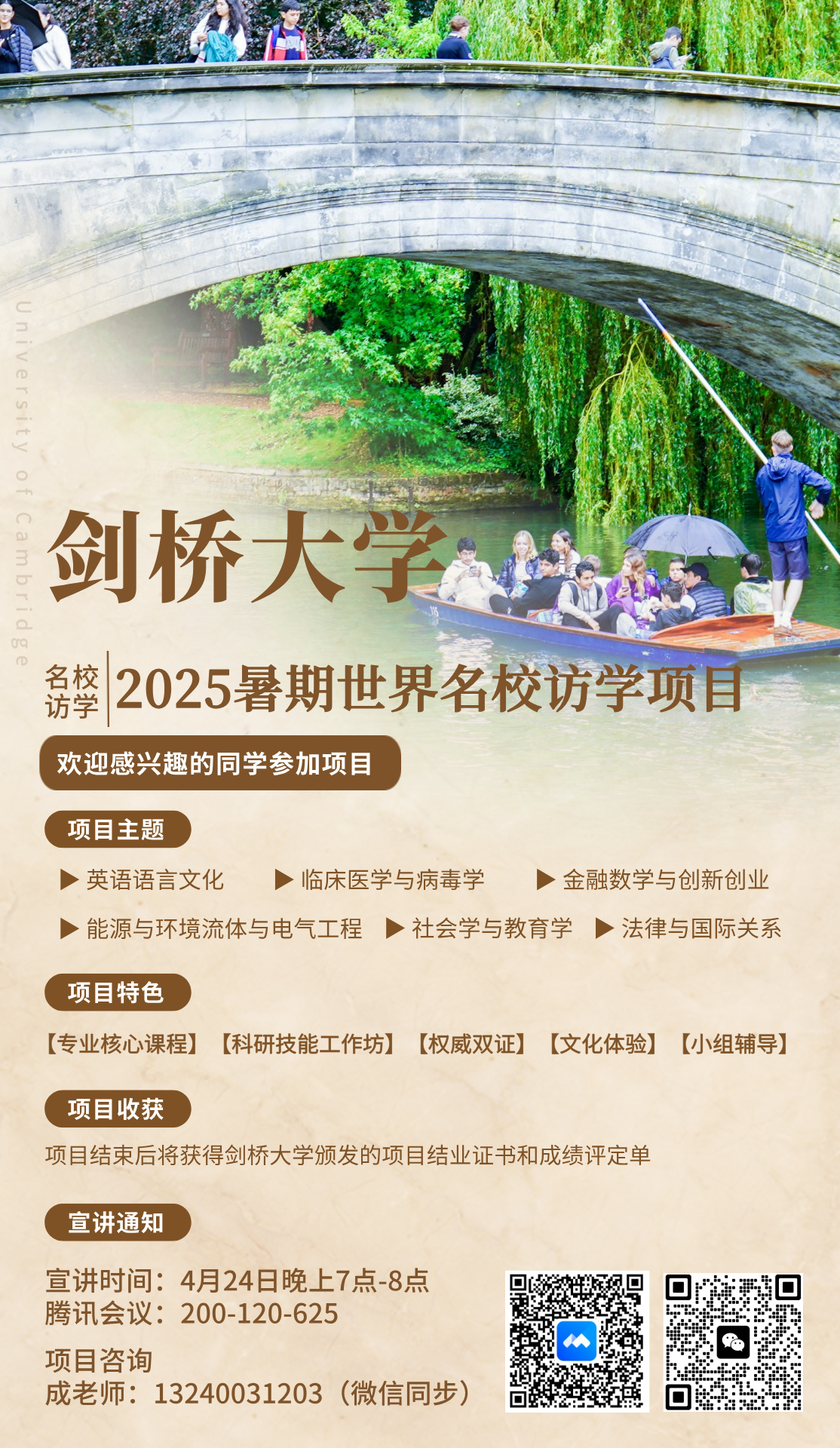 (一)4月24日剑桥大学相关项目主题宣讲会